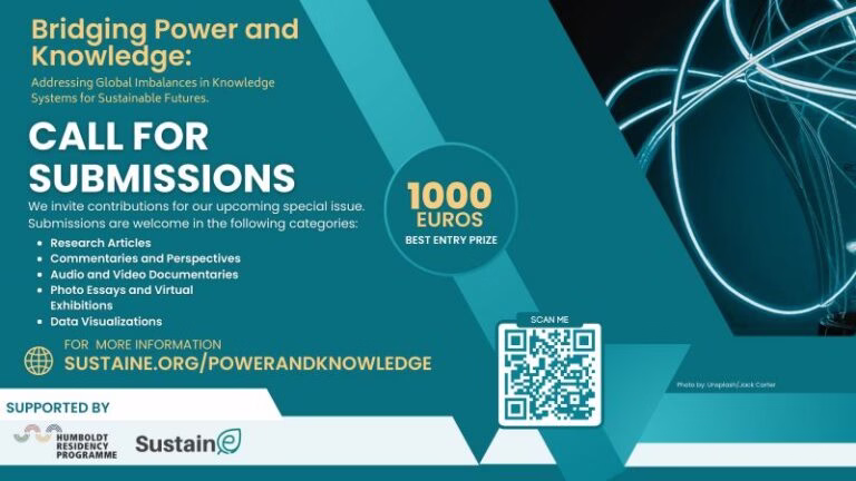 SustainE in collaboration with participants of the Alexander von Humboldt foundation’s 2024 Humboldt Residency Programme are inviting submissions for a special issue on Bridging Power and Knowledge: Addressing Global Imbalances in Knowledge Systems for Sustainable Futures. The project is the result of a collaboration between participants of the Alexander von Humboldt Foundation’s 2024 Humboldt Residency Programme and SustainE.