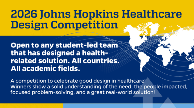 Applications are open for the Johns Hopkins Healthcare Design Competition 2026. The competition celebrates good design in healthcare. Winners show a solid understanding of the need, the people impacted, focused problem-solving, and a great real-world solution.