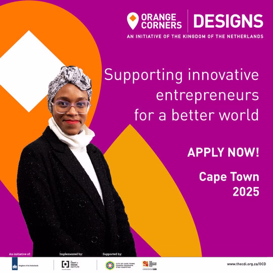 The Orange Corners Designs programme is now open for Cape Town applications! This 12-month intensive programme is aimed at supporting 20 innovative, Cape Town-based businesses that contribute to the SDGs (in sectors such as but not limited to circular/green economy, digital, agriculture and creative sectors).