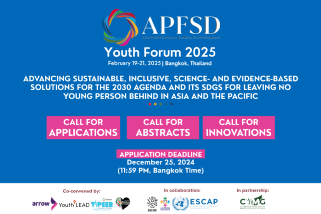 Applications are open for the APFSD Youth Forum 2025. The Asia Pacific Forum on Sustainable Development (APFSD) Youth Forum is an annual convening that brings together young people from across Asia and the Pacific to discuss and deliberate on sustainable development issues.