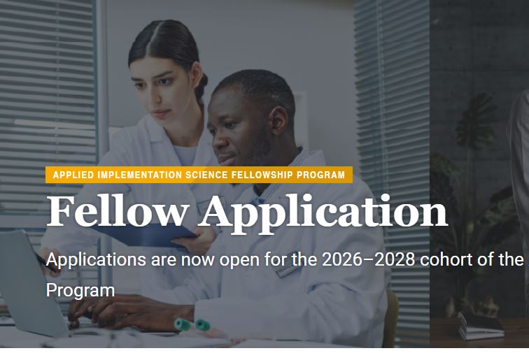 Applications are invited for the Applied Implementation Science Fellowship Program 2026-2028. This two-year program will train early and mid-career researchers who work within a health care delivery system and are interested in applying implementation science (IS) theory and methods to their health system-based research programs.
